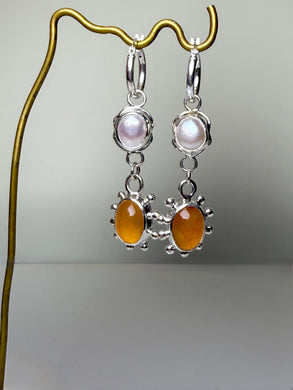 • At Dusk Sterling Silver Carnelian & Pearl Earrings