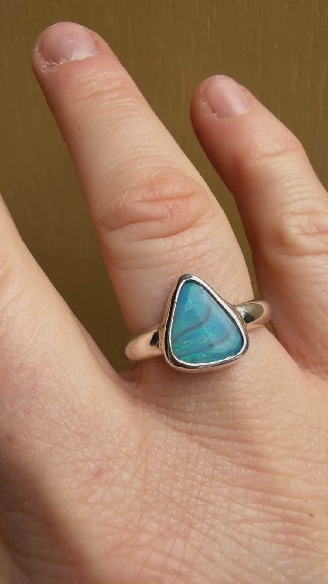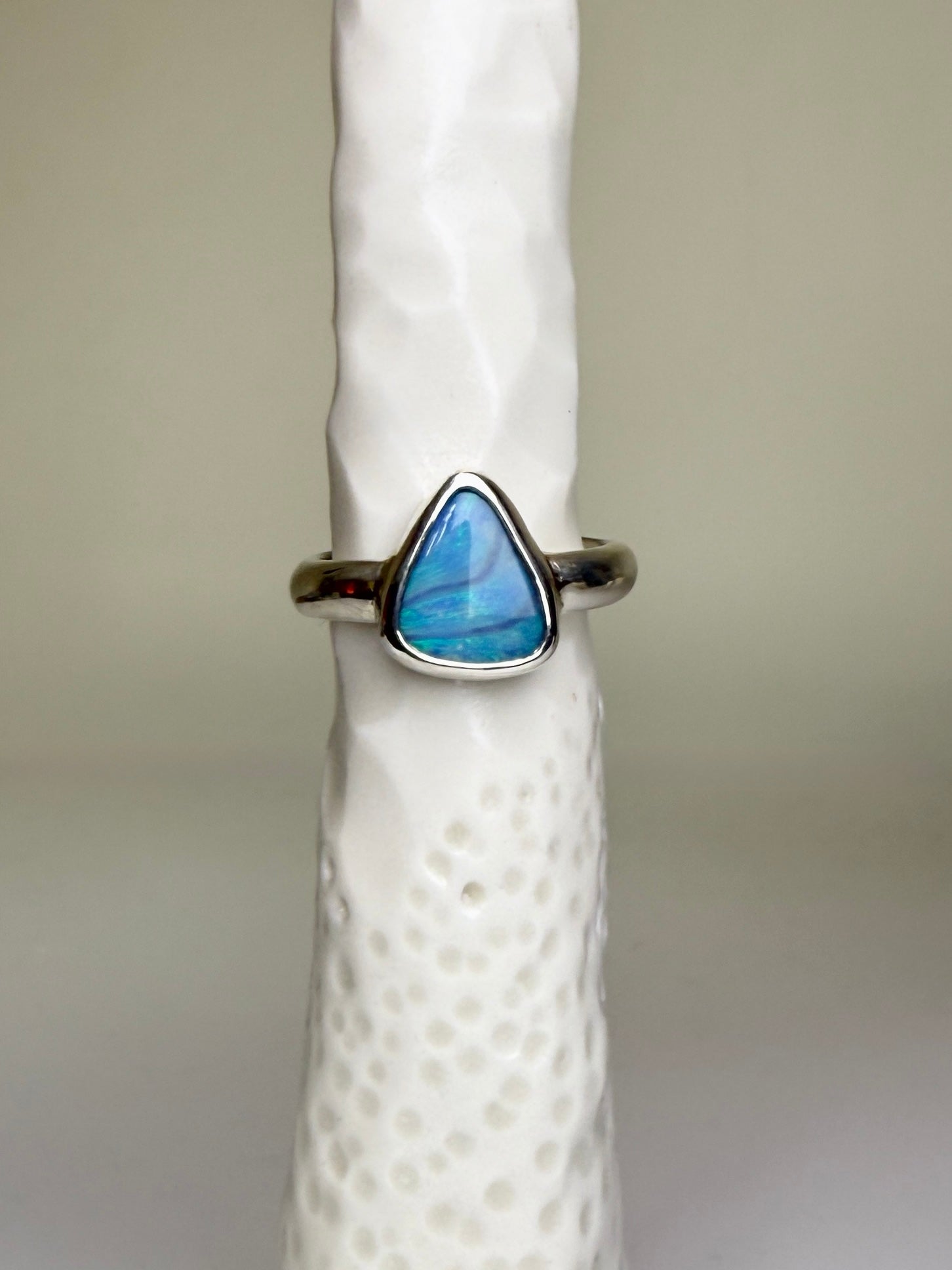 An ancient talisman from the earth, this opal is the result of millions of years of water dripping through rock and this particular piece decided to form to be a blue as ice in a glacier.